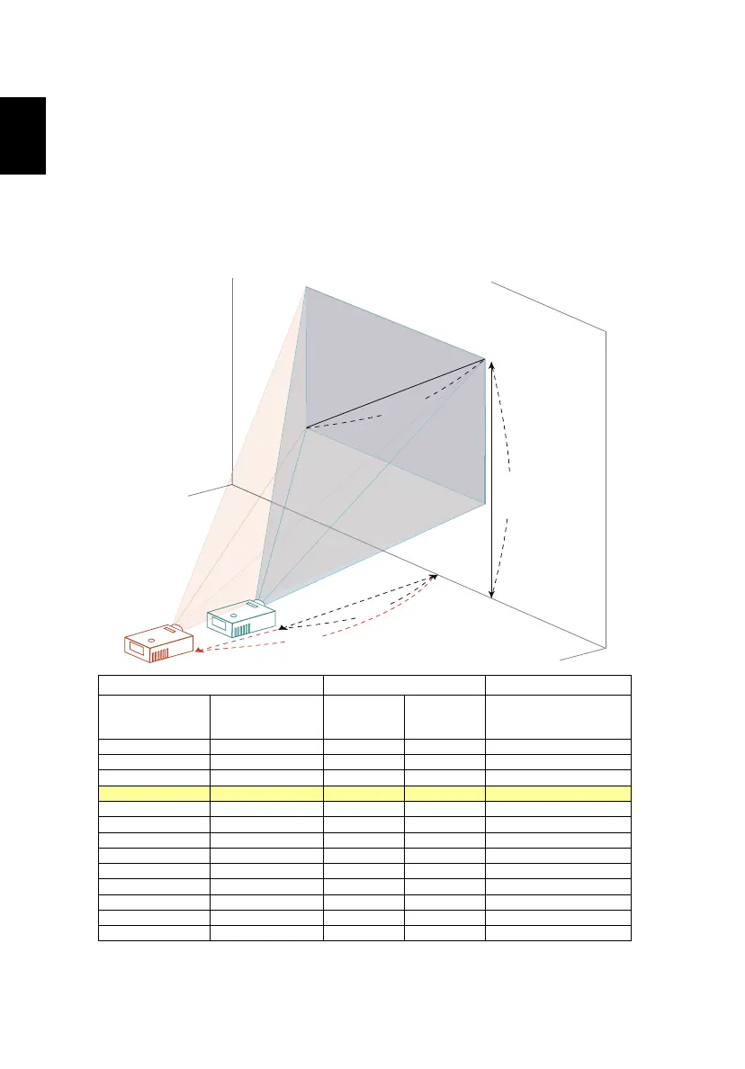 To obtain an image size of 60" set the projector at a distance 2.4 m and 2.6 m