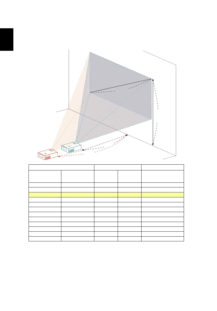 To obtain an image size of 60" set the projector at a distance 1.6 m and 2.1 m