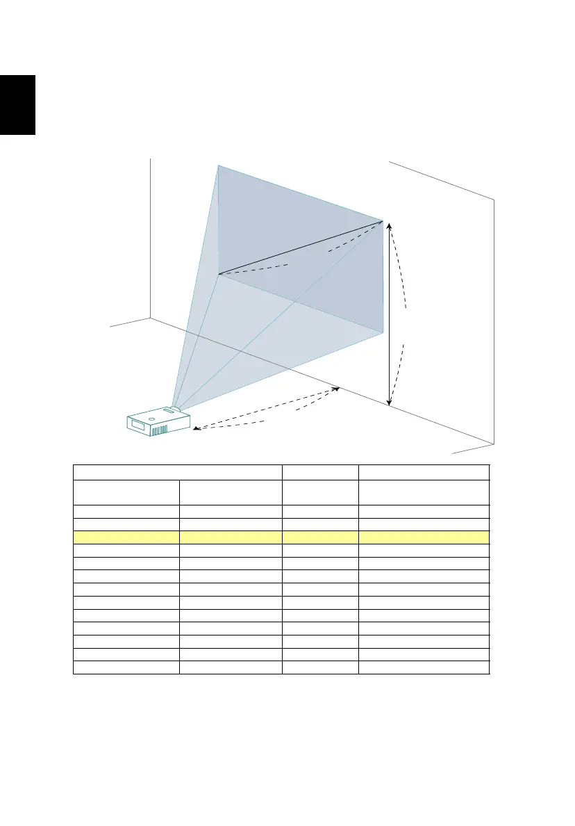 To obtain an image size of 60" set the projector at a distance 0.7 m from the