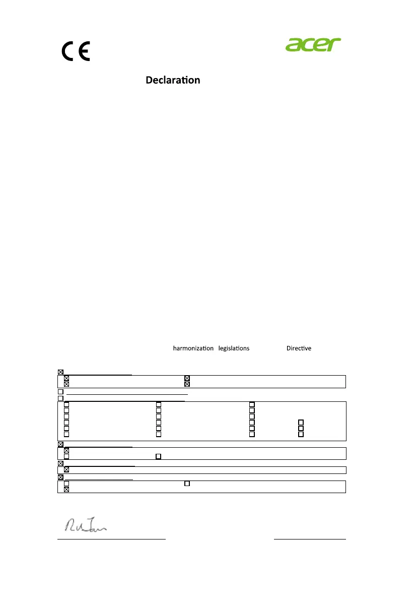 We, Acer Incorporated, hereby declare under our sole responsibility that the product described above is in