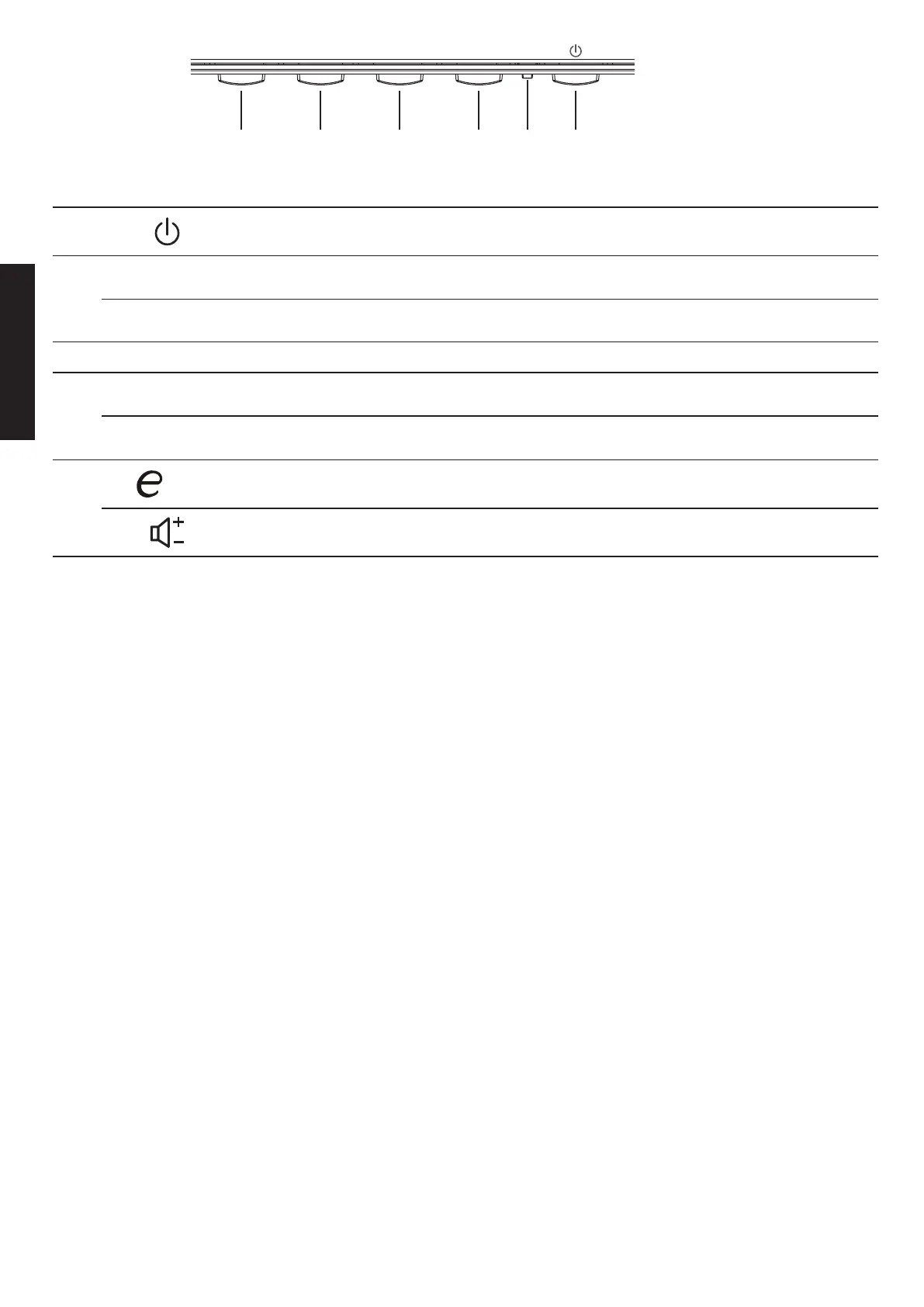 Turns the monitor on/o. Blue indicates power on. Amber