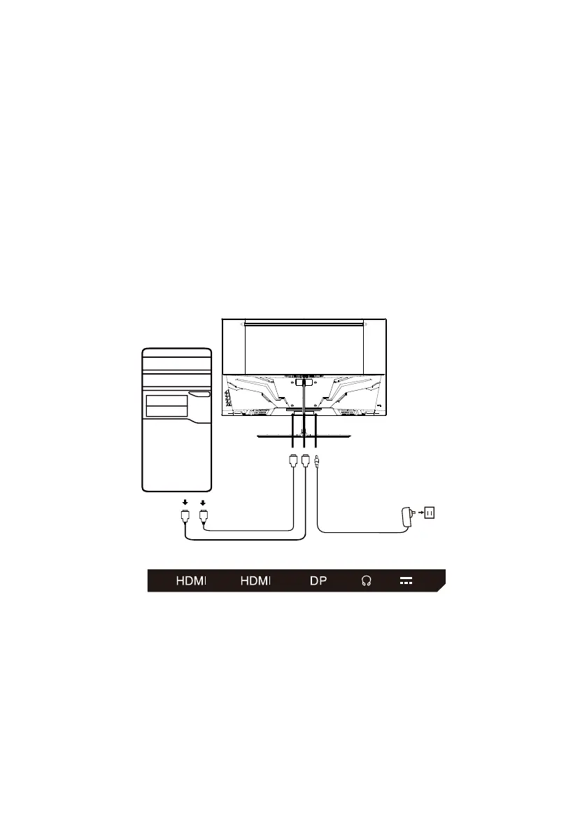 b. Connect one end of the HDMI/DP cable to the back of the monitor and the