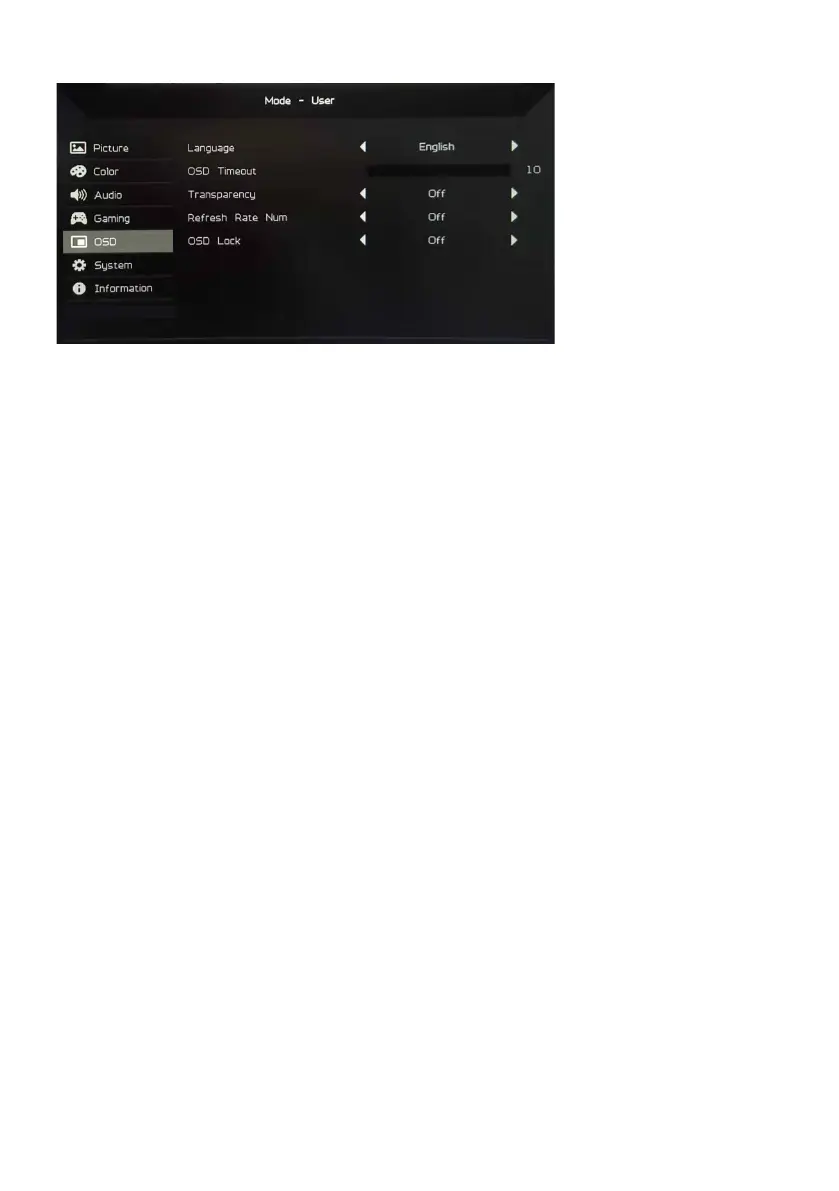 5. OSD Timeout: Adjust the delay before closing the OSD menu.