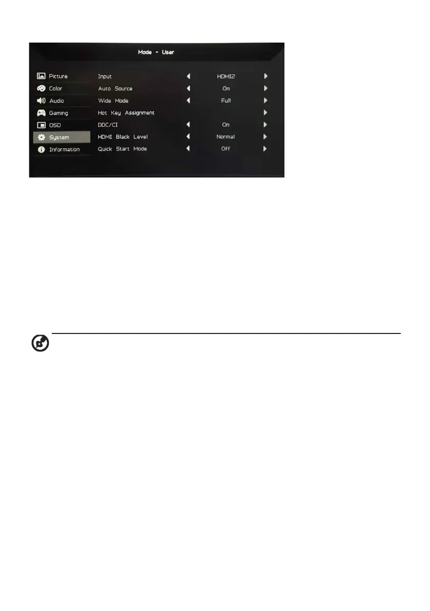 2. Use Buttons 3/4 to select System from the OSD. Double-press Button 1 to
