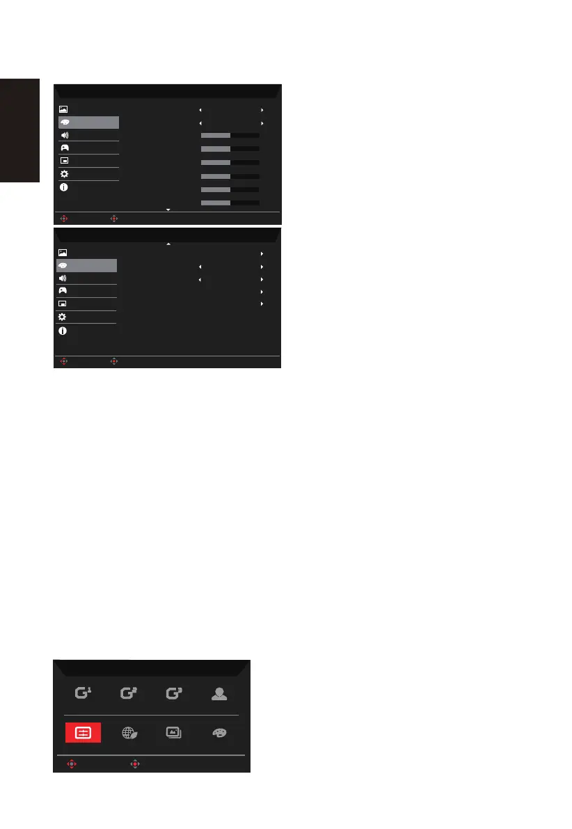 2. Toggle the joystick to the up or down to select Color from the OSD.Then toggle to the