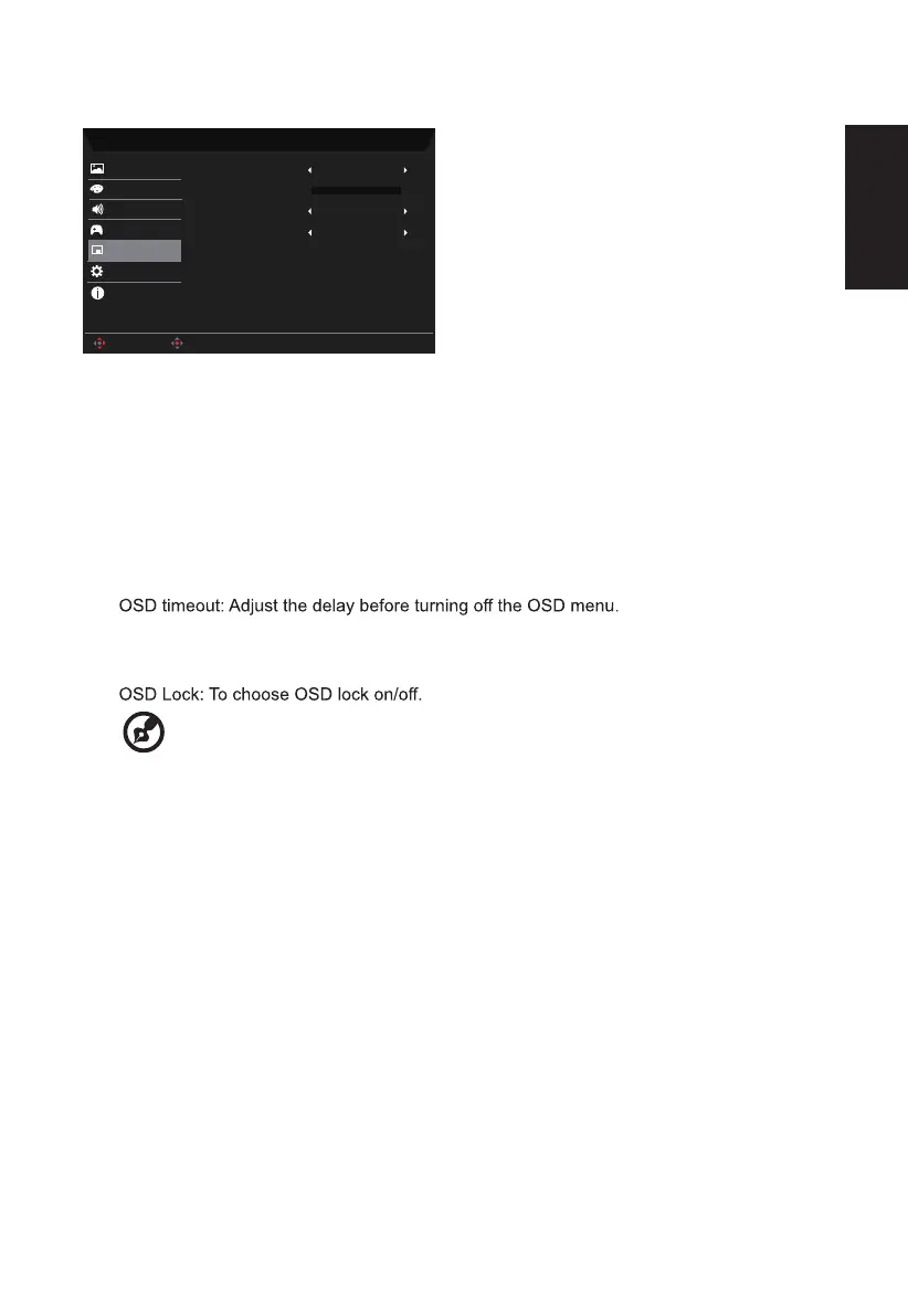 4. The OSD menu can be used to adjust the Languagre, OSD Timeout, Transparency,