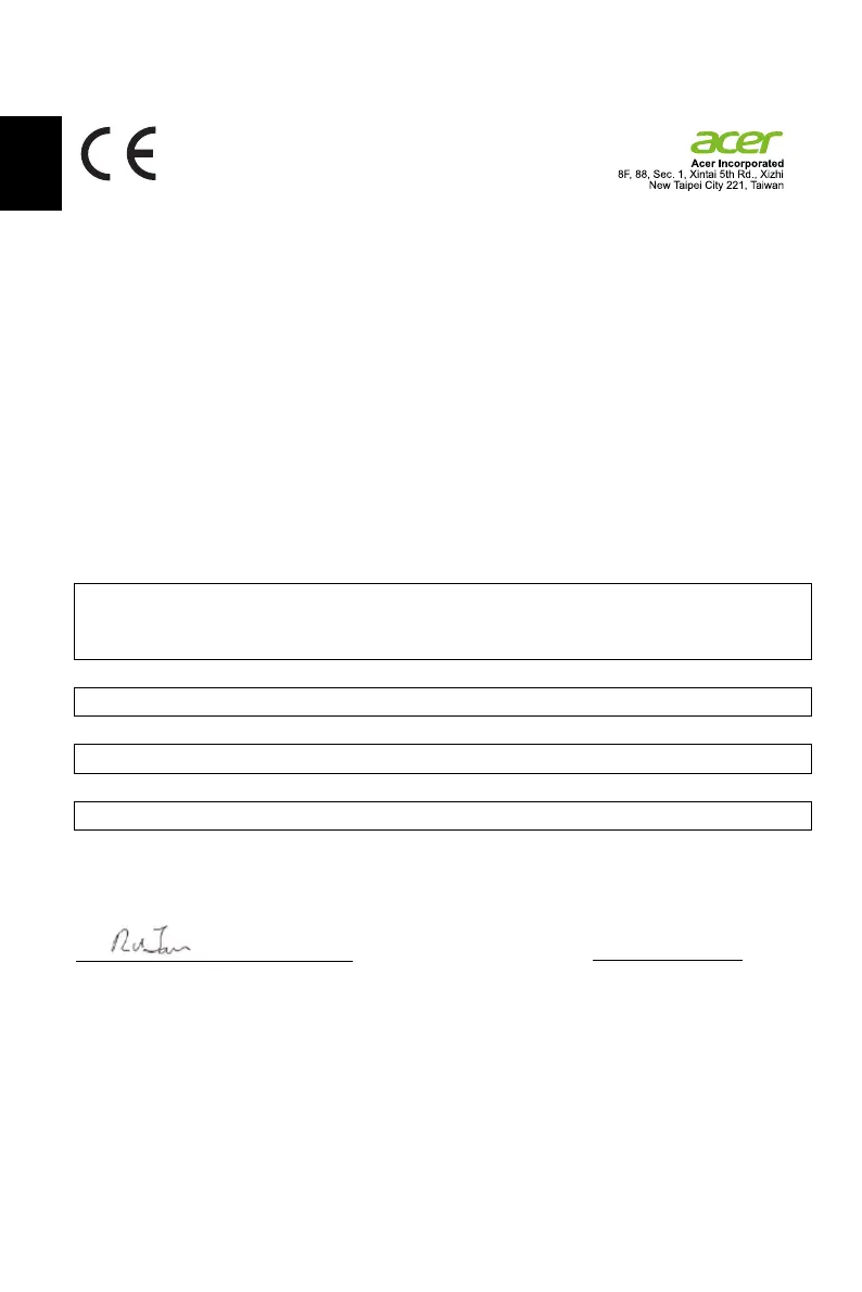 We, Acer Incorporated, hereby declare under our sole responsibility that the product