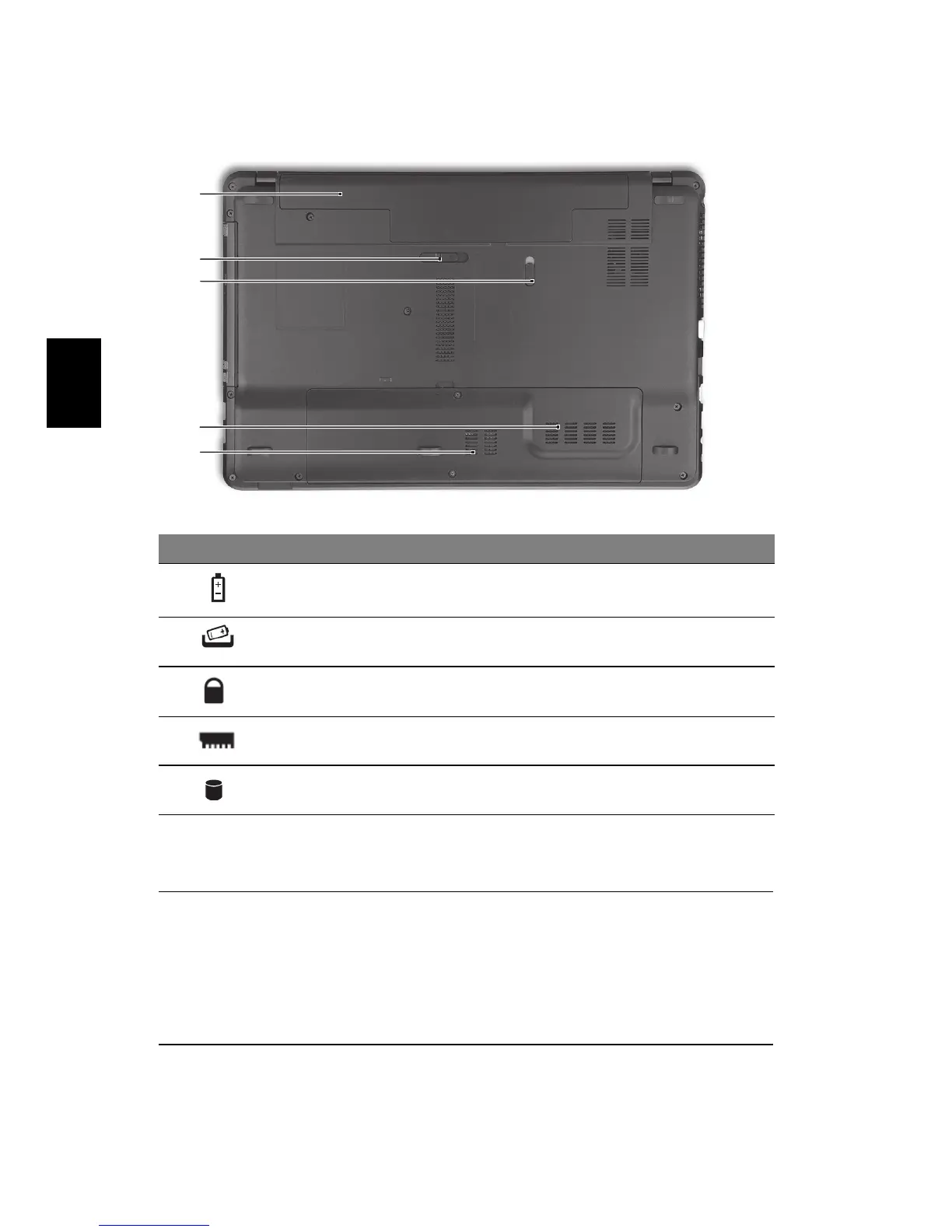 1 Jednotka batérie Slúži na uloženie batérie poítaa.