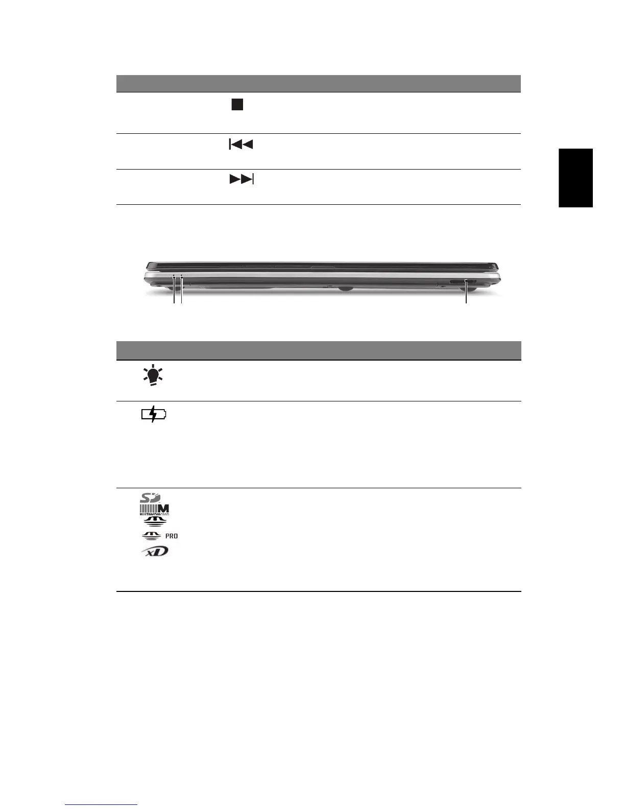 1 Ein/Aus-Anzeige Zeigt den Ein/Aus-Status des Computers an.