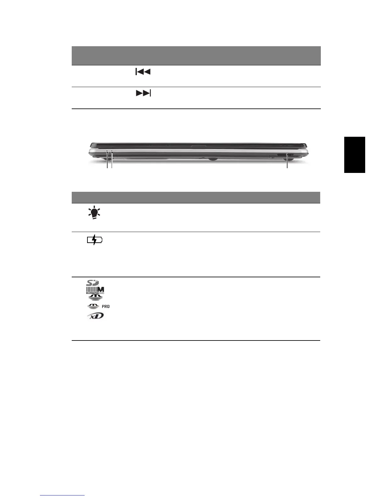 1. Gli indicatori del pannello frontale sono visibili anche quando il coperchio del