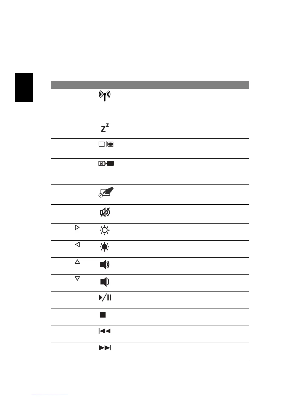 Tecla de atalho Ícone Função Descrição