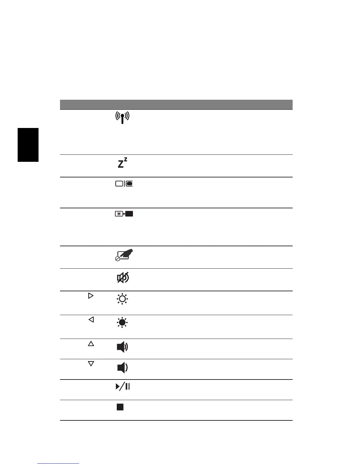 <Fn> + <Pg Up> Stoppen Het afspelen stoppen van het