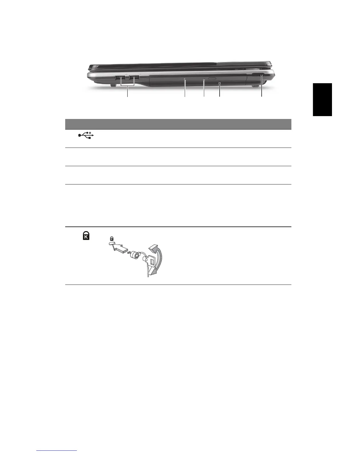 5 Spor for Kensington-lås Kobler til en Kensington-kompatibel