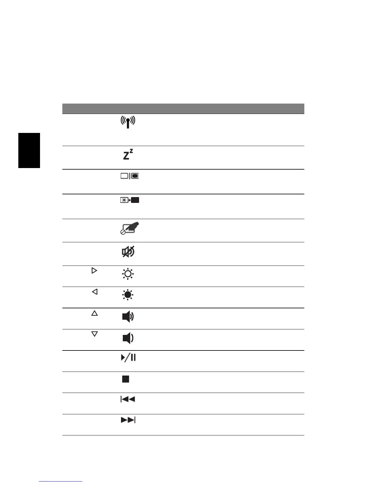 <Fn> + <F8> Højttaler til/fra Tænder og slukker for højttalerne.