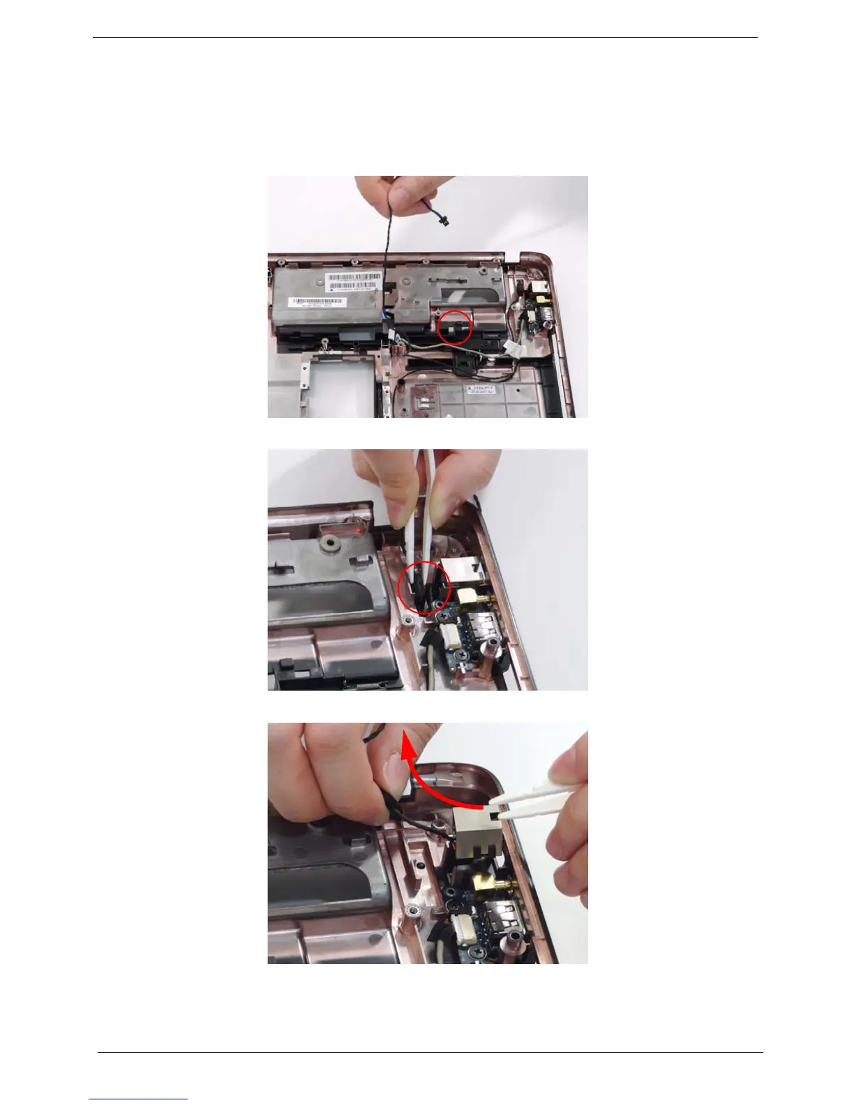 6. Insert the tweezers in the RJ-11 port and push up to detach and lift the port from the base.