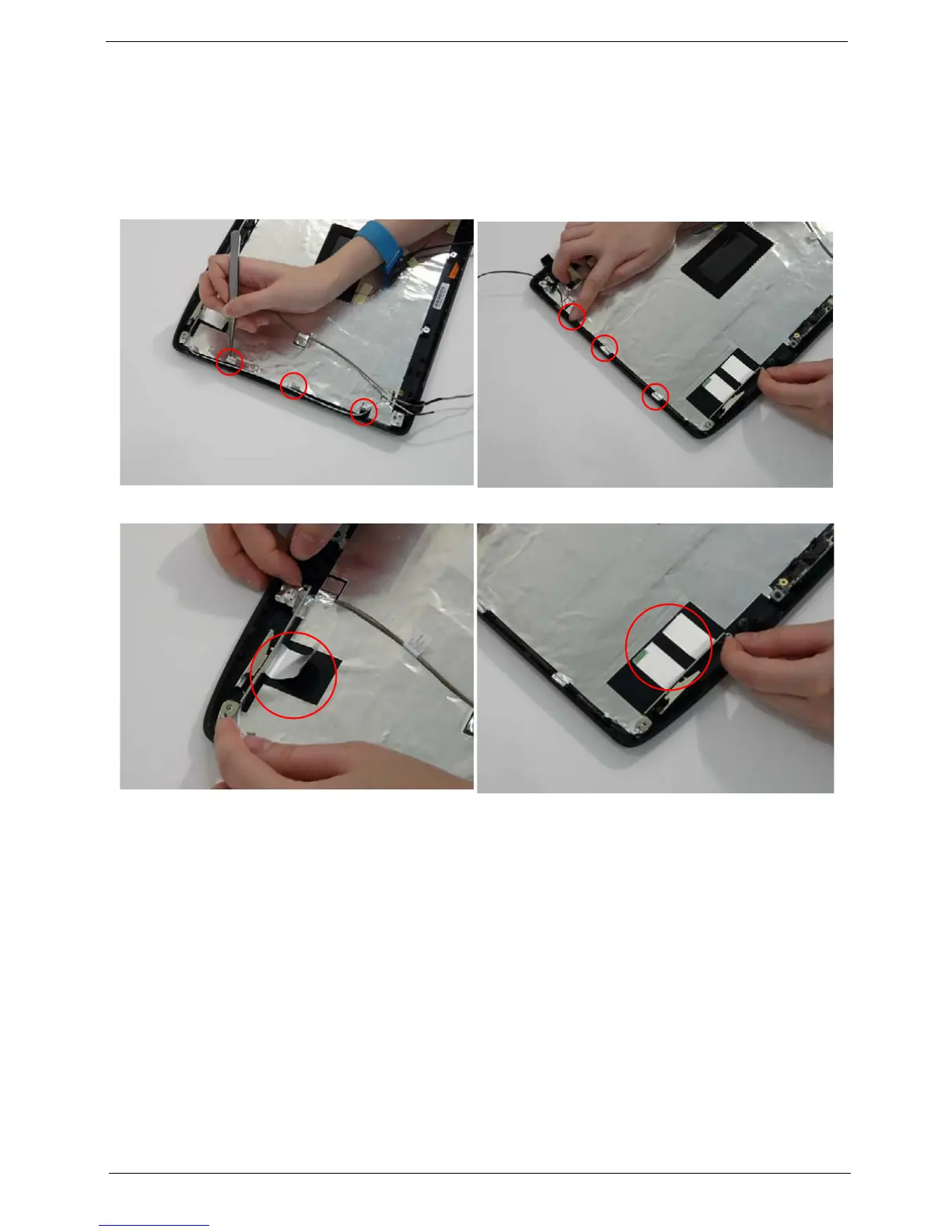 7. Remove the antenna cables and assembly from the LCD module.