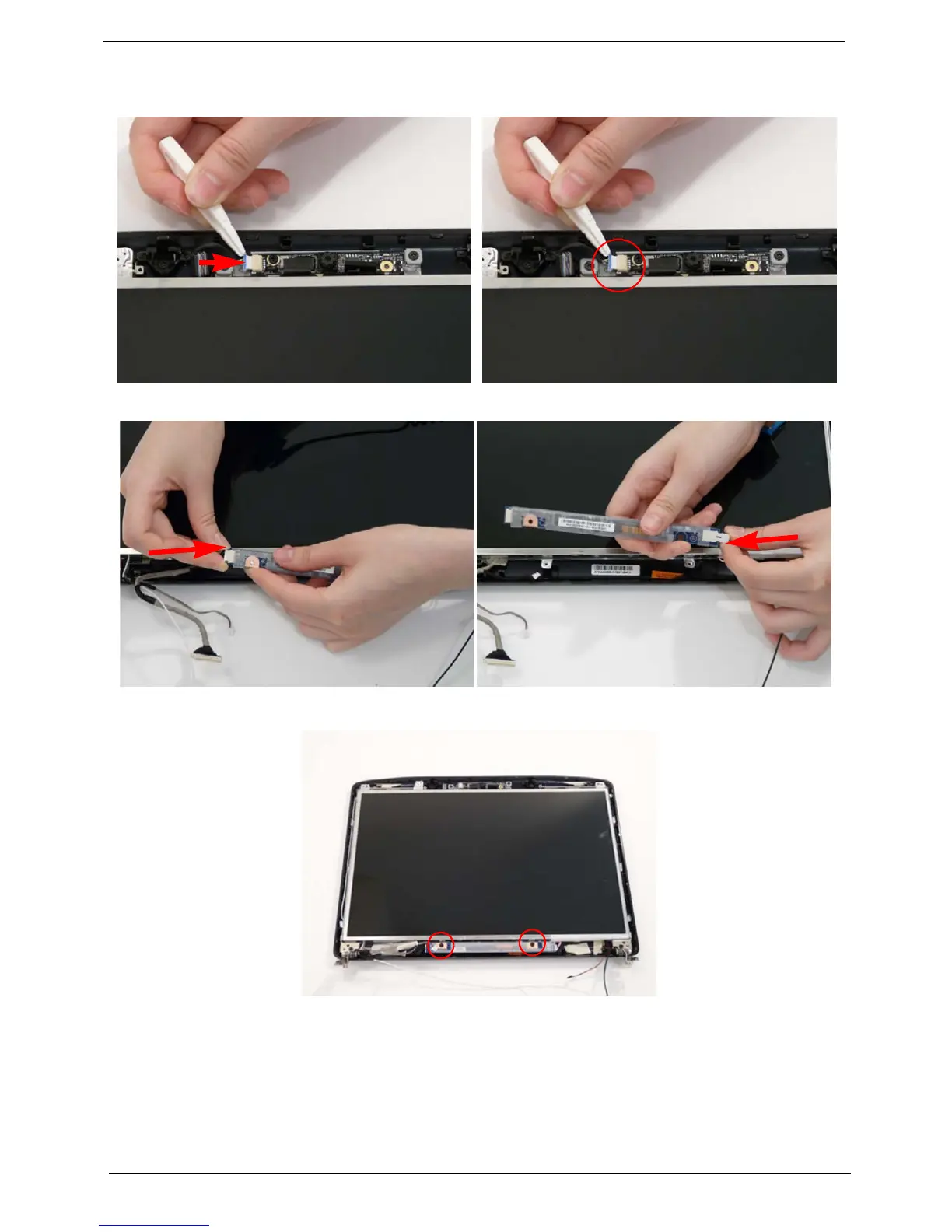 14. Connect the Camera Module cable as shown. 15. Connect the left and right Inverter board cables as