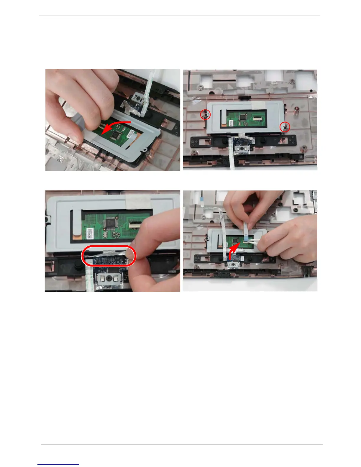 4. Replace the TouchPad FFC as shown.