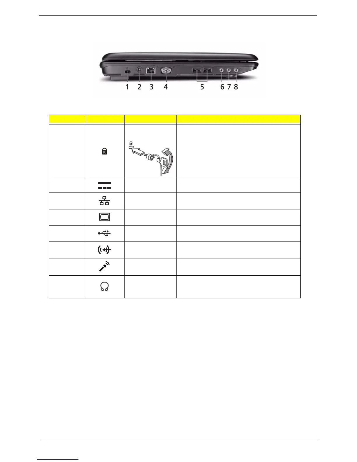 2 USB 2.0 ports Connect to USB 2.0 devices (e.g. USB mouse,