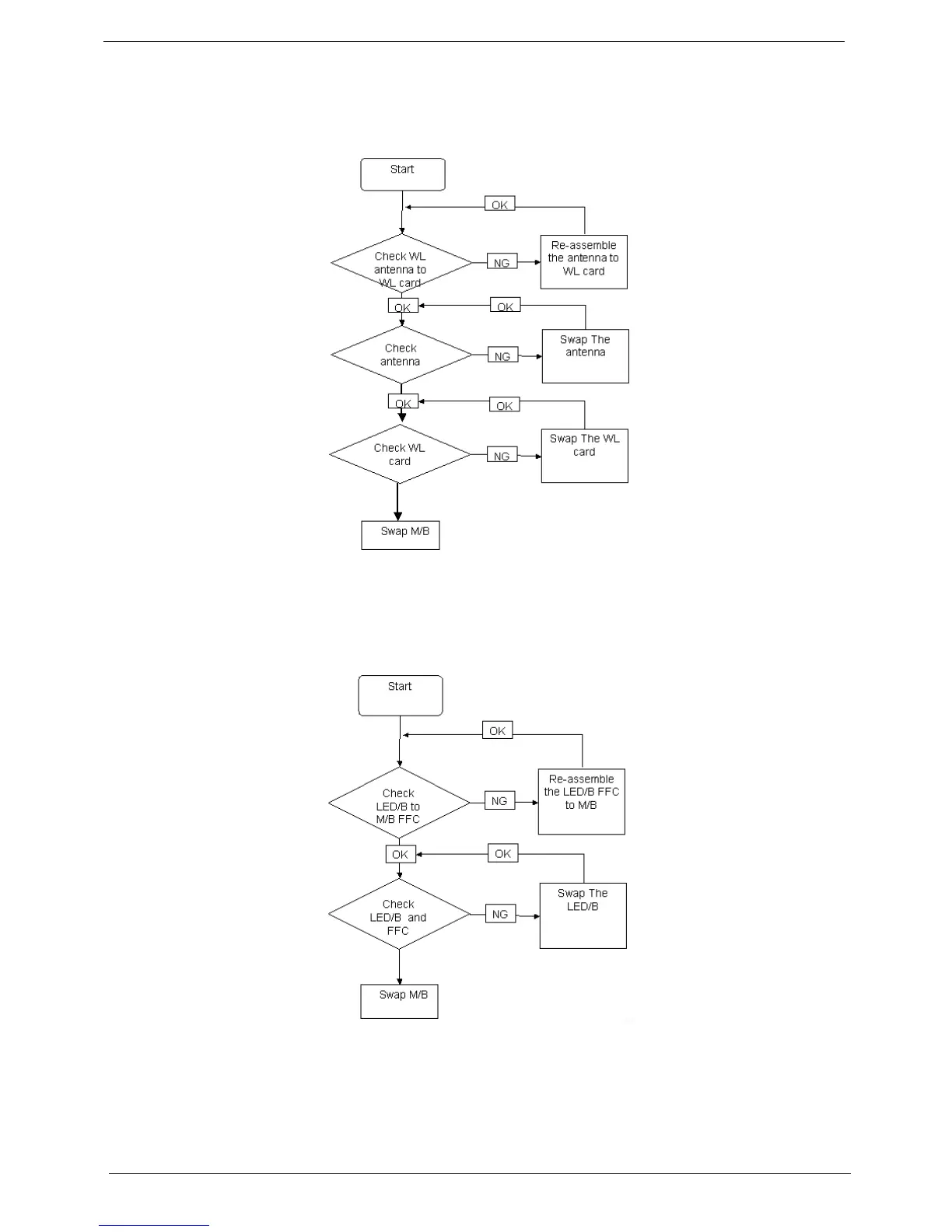 If the WLAN fails, perform the following actions one at a time to correct the problem. Do not replace a non-