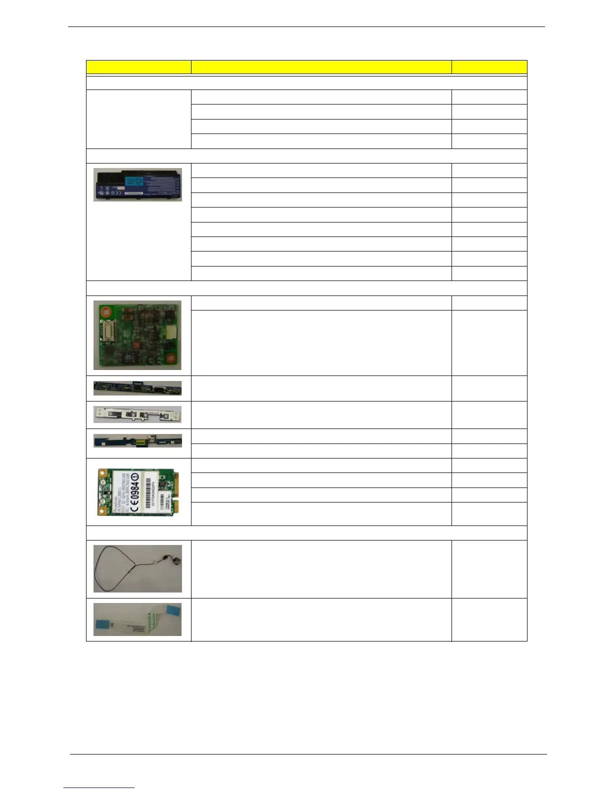 eMachines E720/E520 FRU List