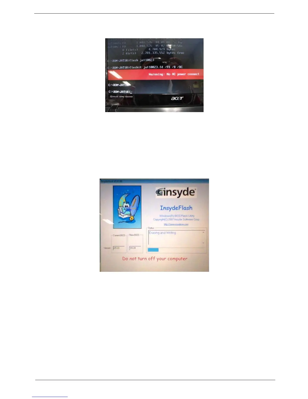 4. In flash BIOS, the message Please do not remove AC Power Source displays.