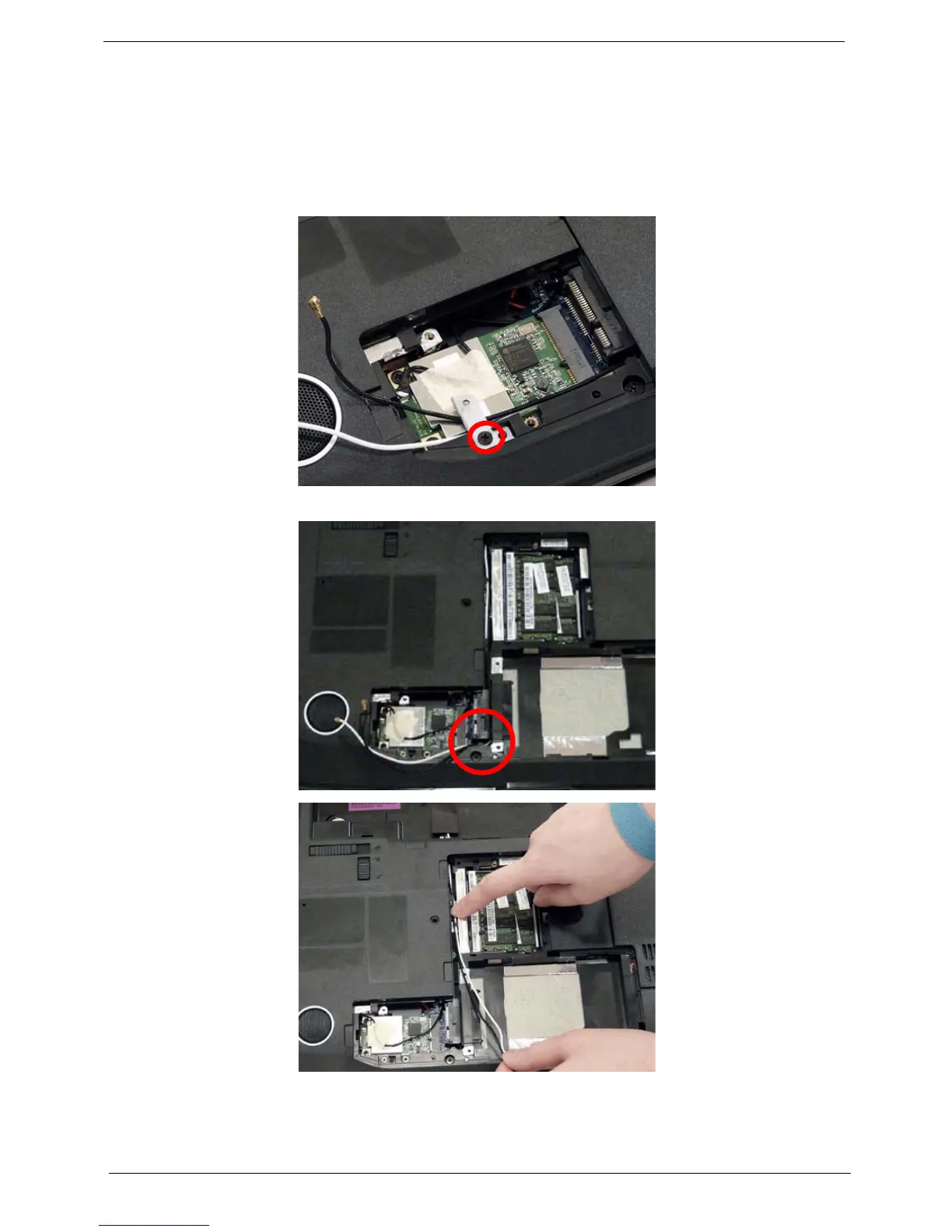 WARNING:Do not attempt to pull the antenna cables under the WLAN bracket to prevent stripping of the