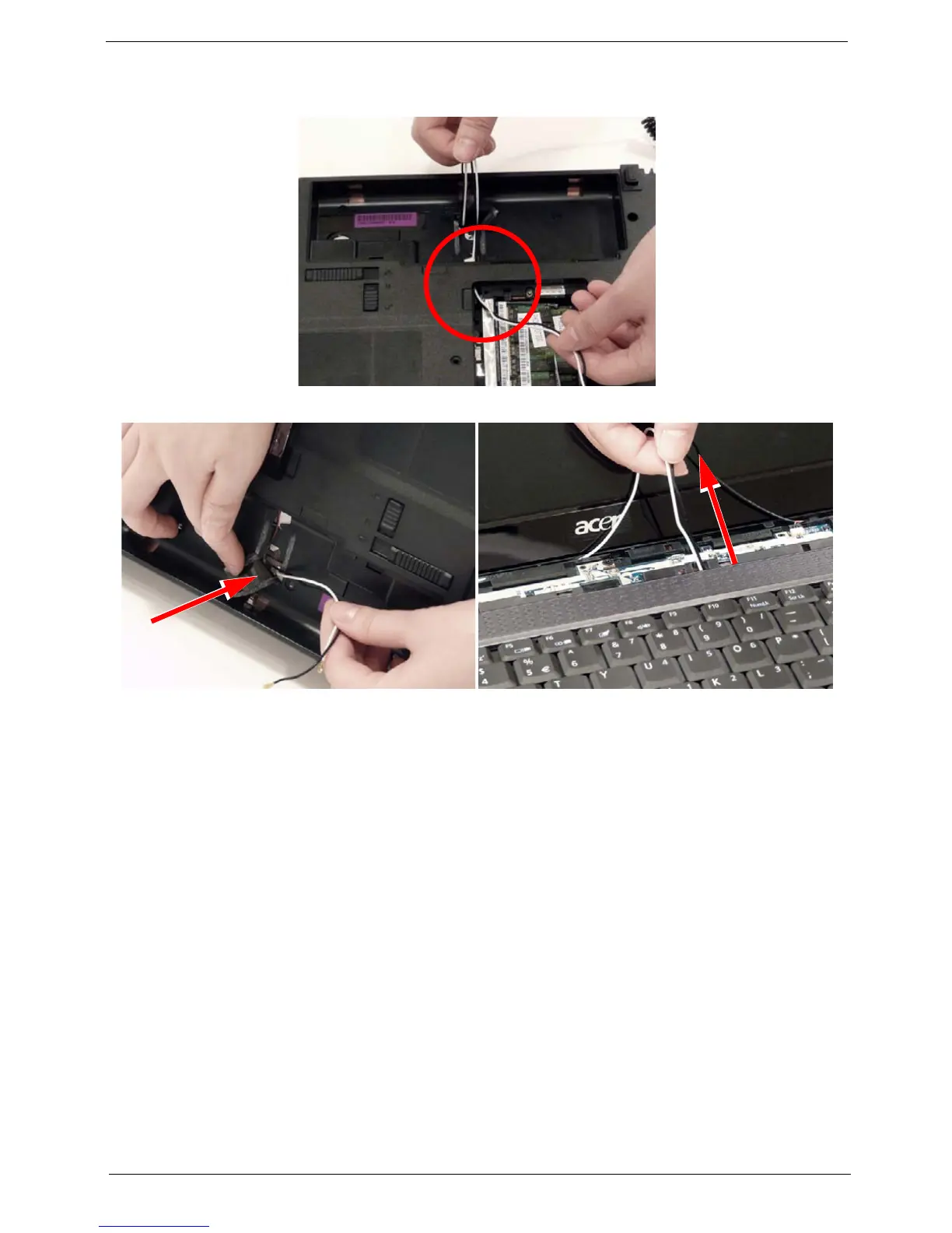 5. Push the cables through the chassis, then turn over the computer and pull them completely through.