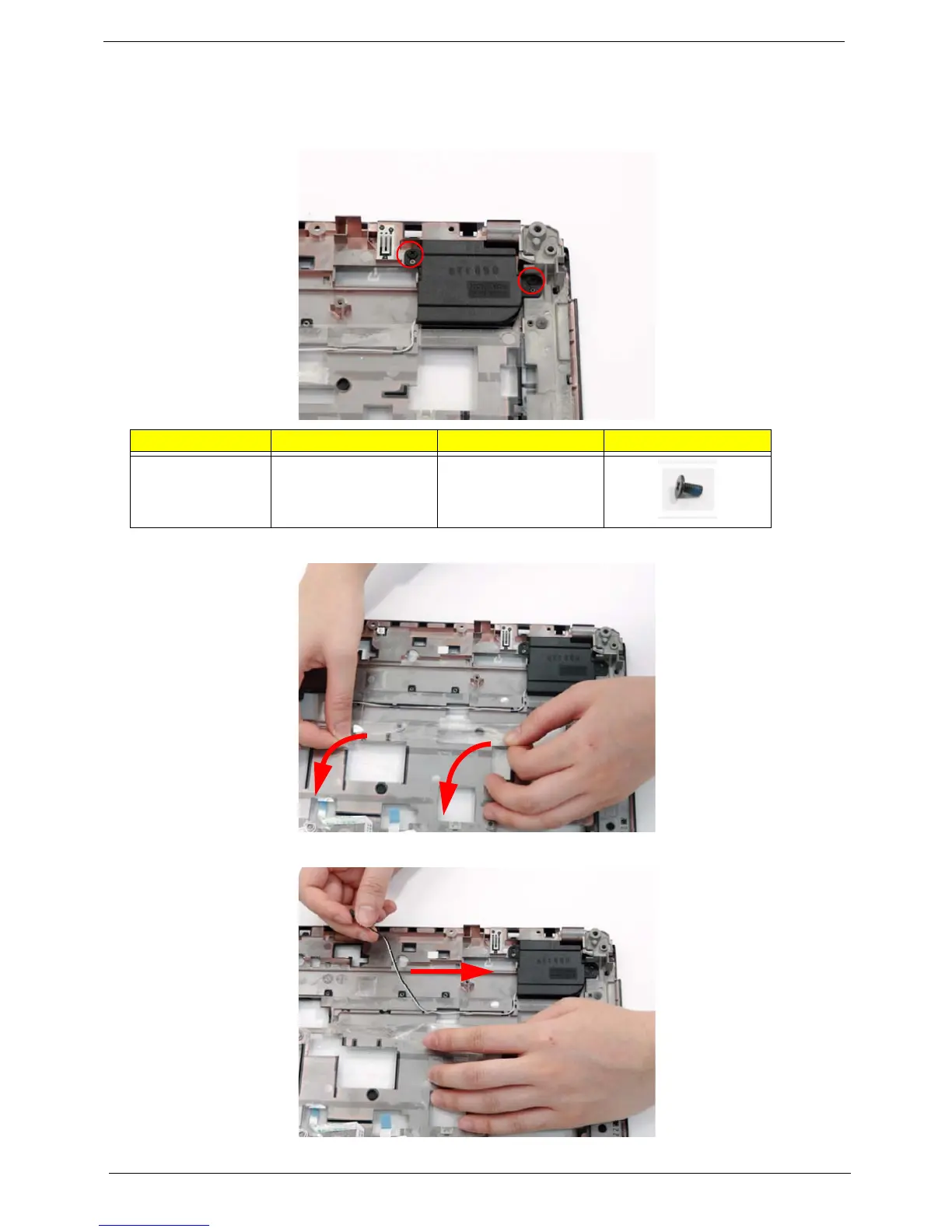 2. Remove the two securing screws from the left speaker.