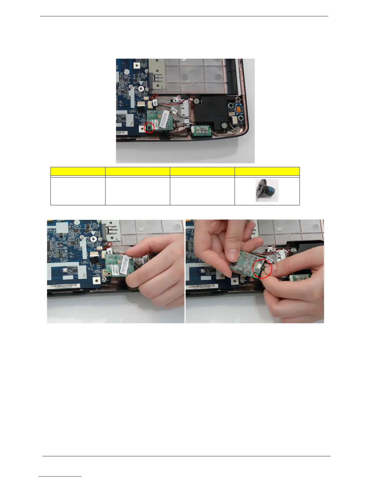 2. Remove securing screw from the modem module.