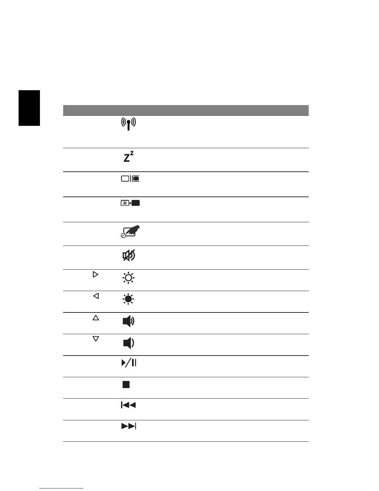 Za aktiviranje vroih tipk pritisnite in držite tipko <Fn> preden pritisnete drugo tipko v