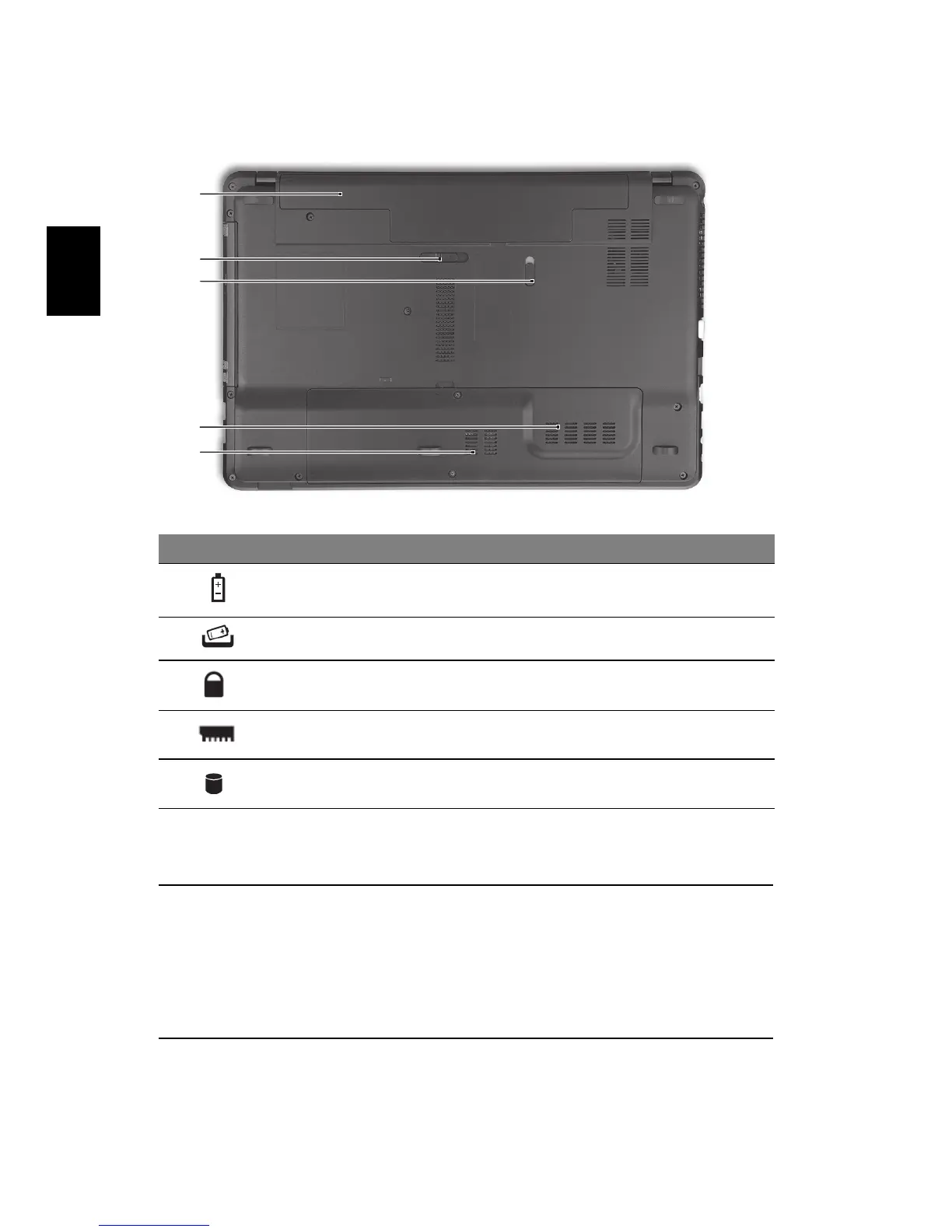 1 Akusektsioon Siin asuvad arvuti akud.