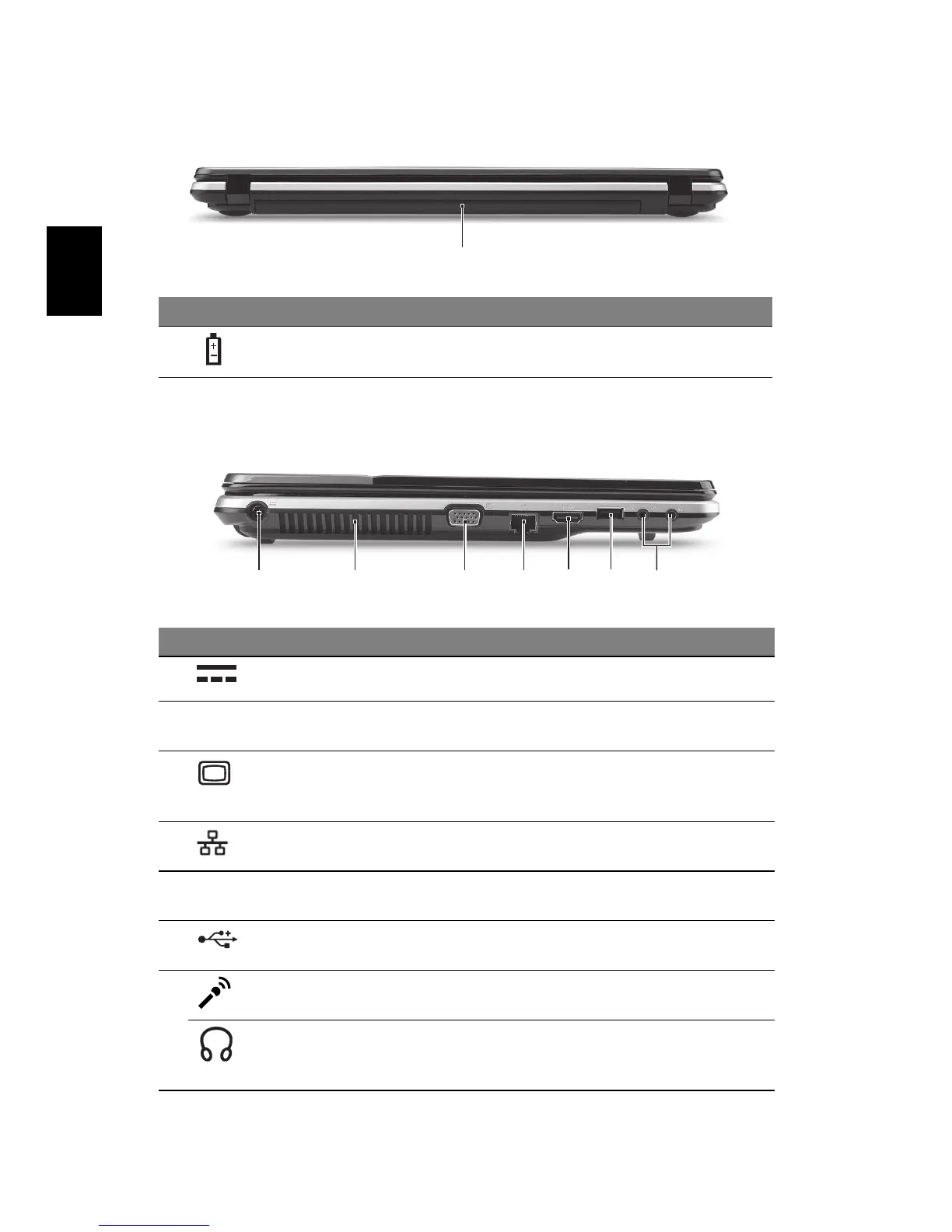 1 Akkufach Enthält den Akku des Computers.