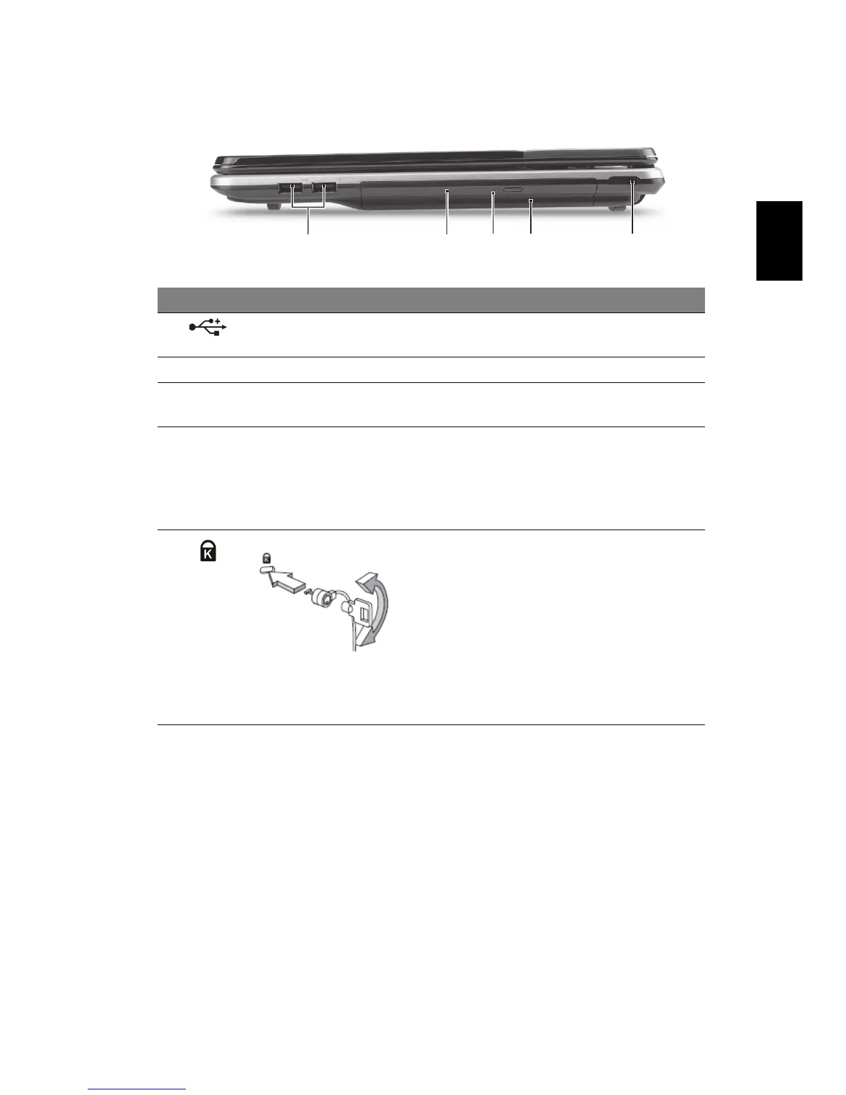 5 Slot kunci Kensington Menghubungkan ke kunci keamanan