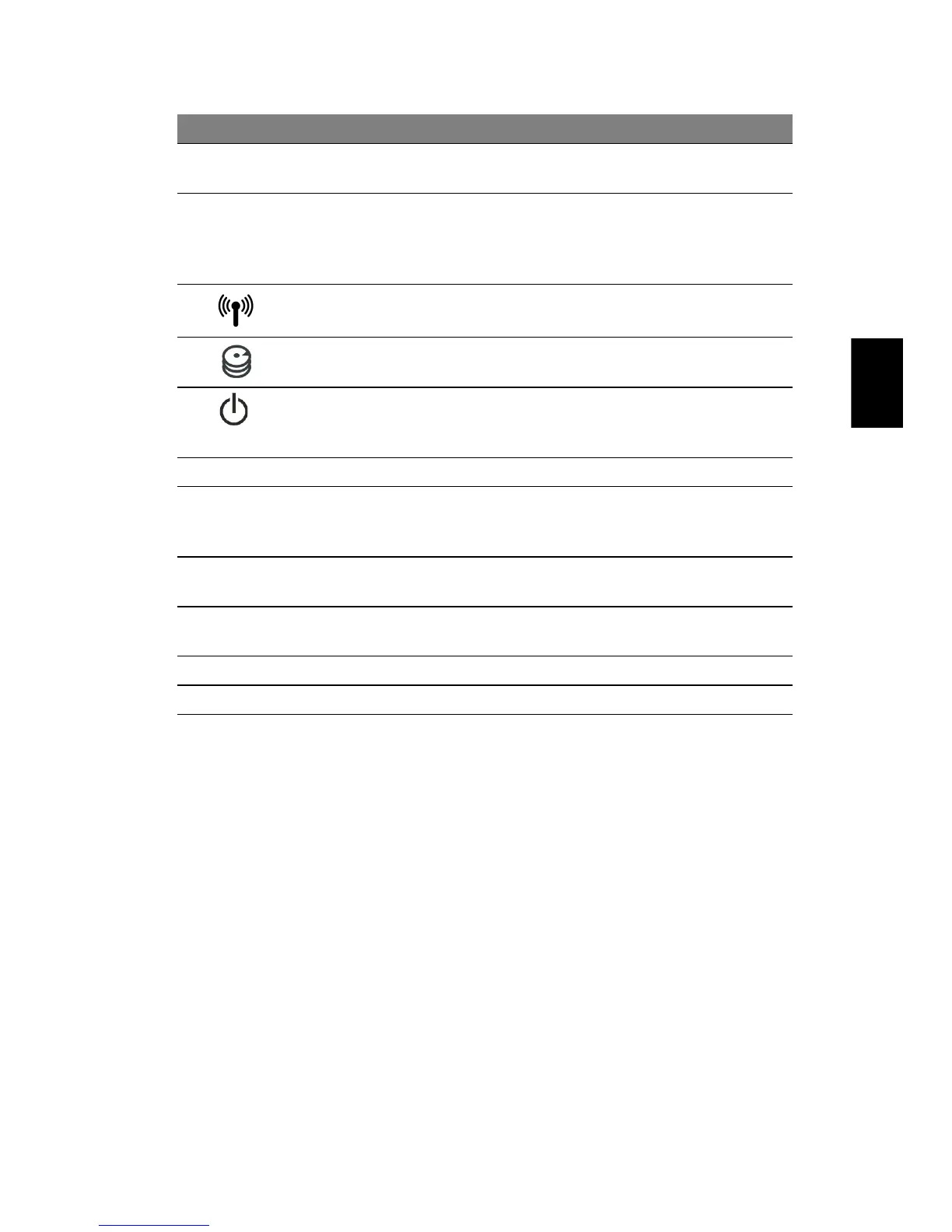 Accende/spegne il computer. Indicano lo stato