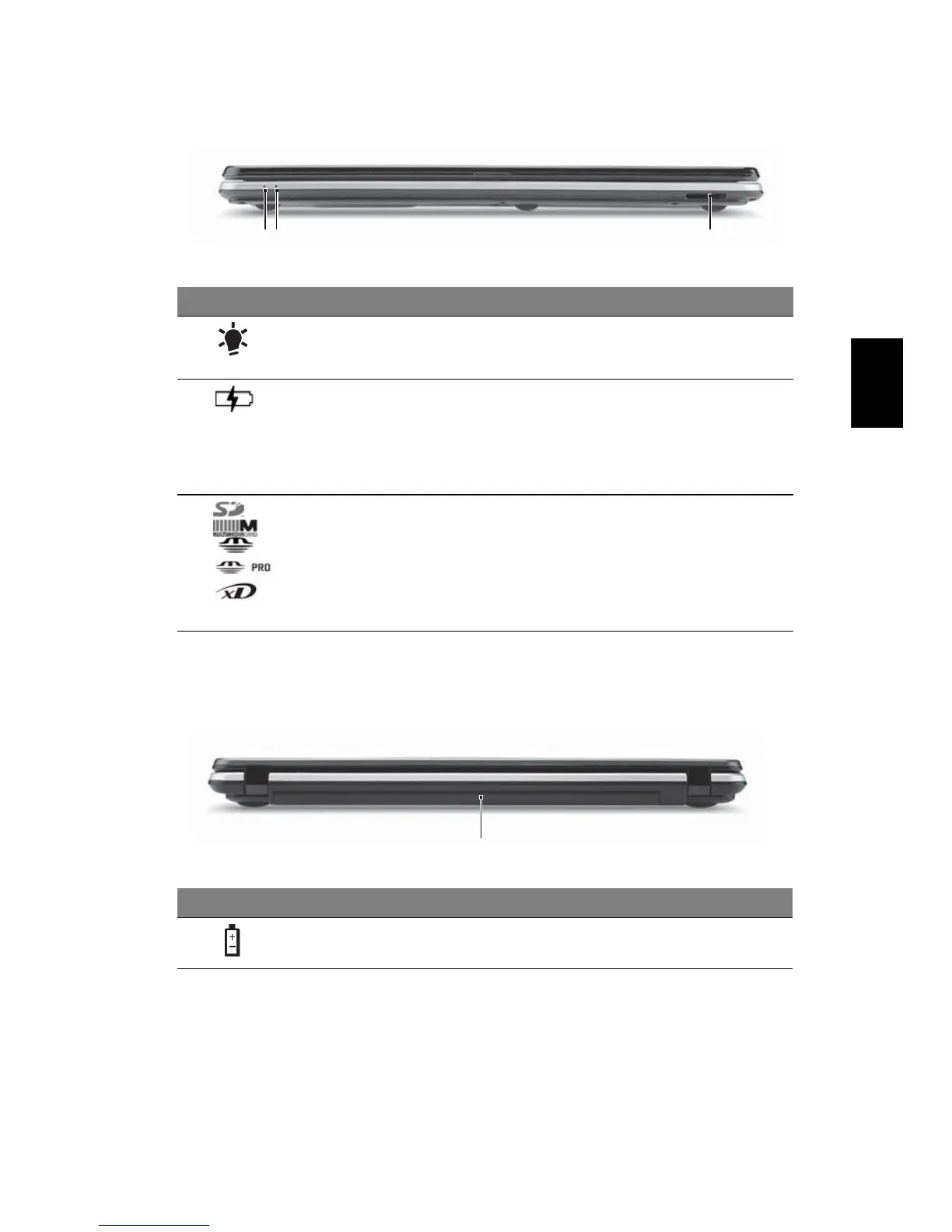 1. Frontpanelets indikatorer er synlige, selvom computerens låg er lukket.