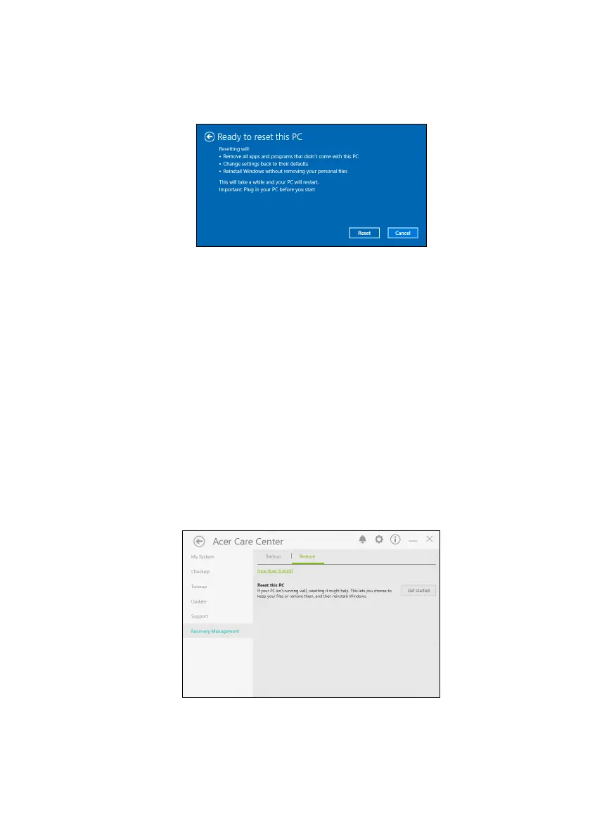 without removing your personal files. Click Reset to continue.
