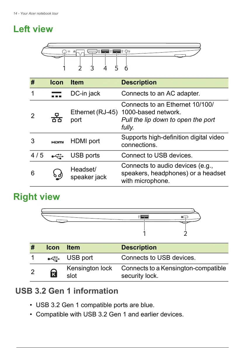 • USB 3.2 Gen 1 compatible ports are blue.