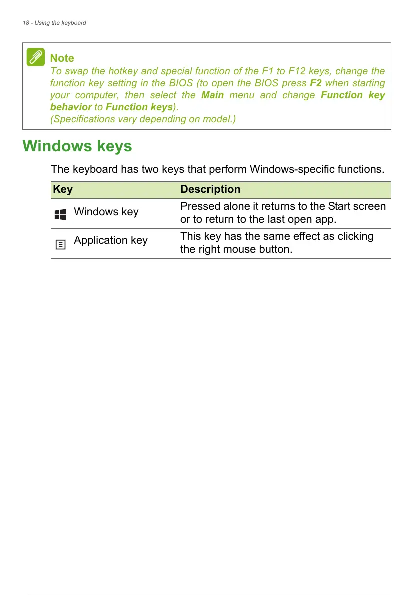 To swap the hotkey and special function of the F1 to F12 keys, change the