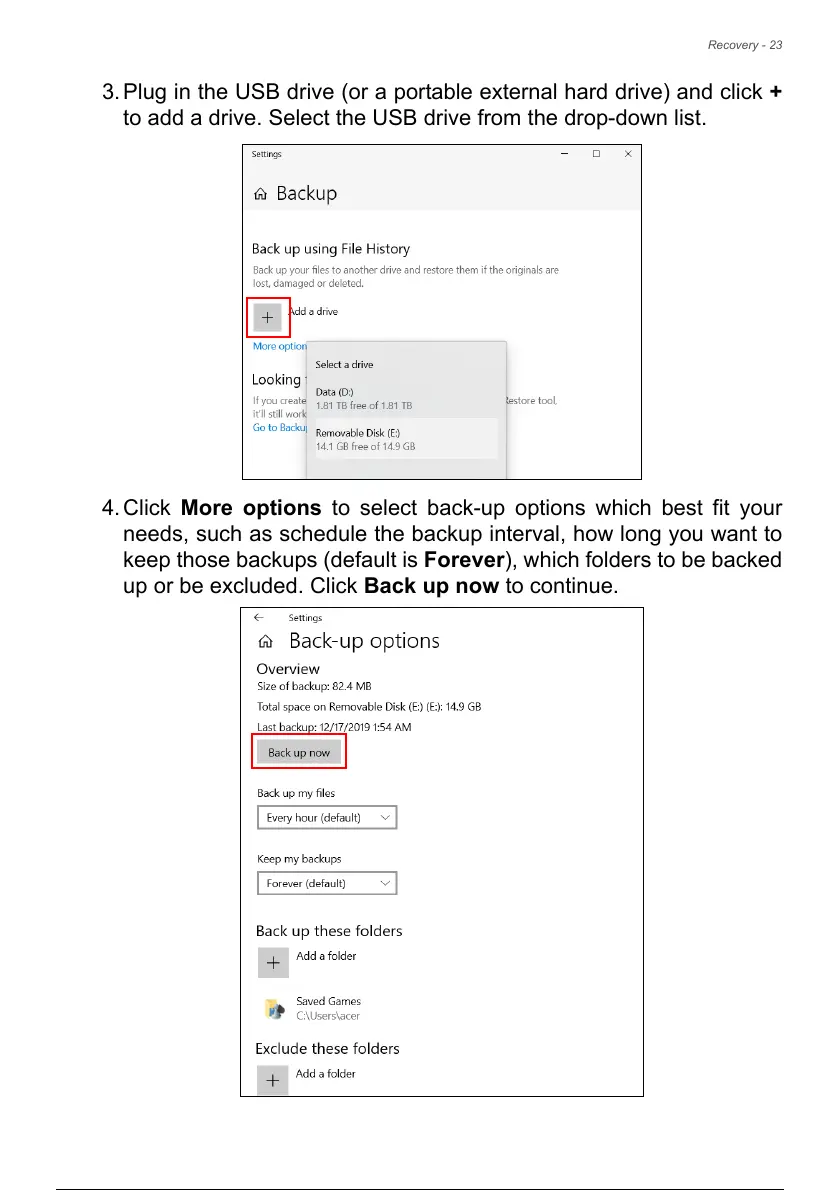 4. Click More options to select back-up options which best fit your