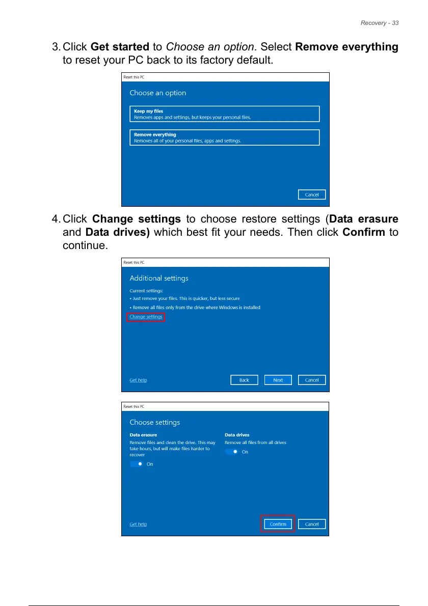 4. Click Change settings to choose restore settings (Data erasure