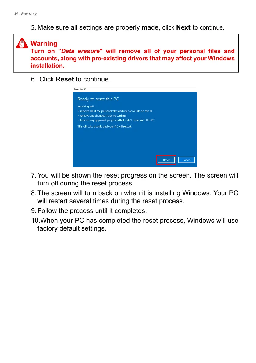 will restart several times during the reset process.