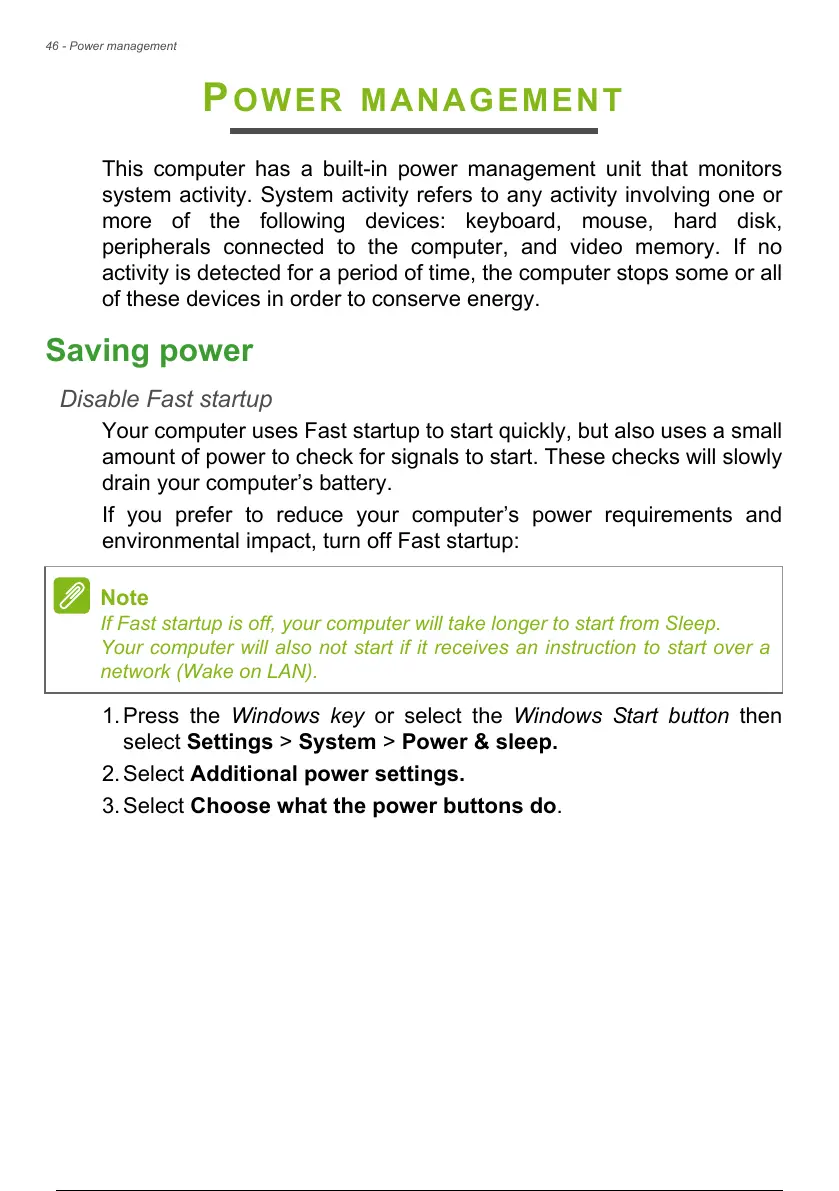 If Fast startup is off, your computer will take longer to start from Sleep.