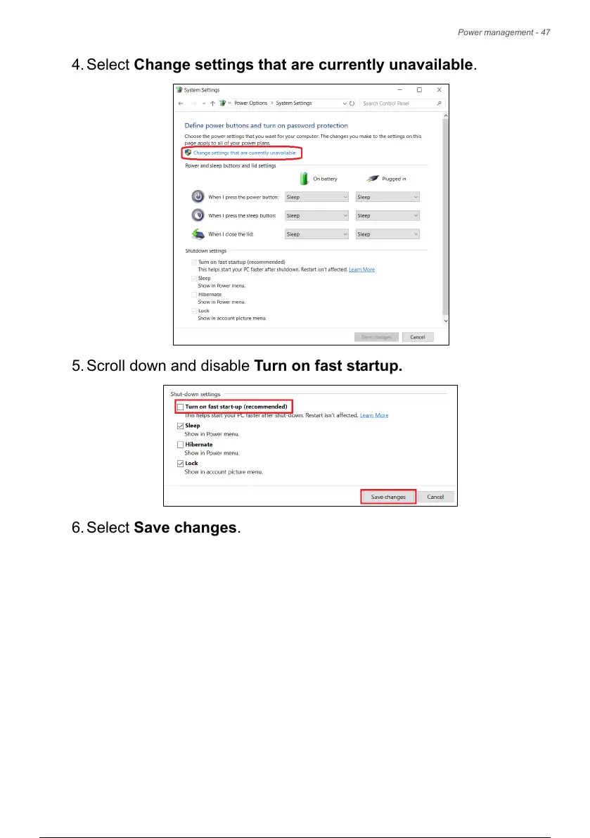 5. Scroll down and disable Turn on fast startup.