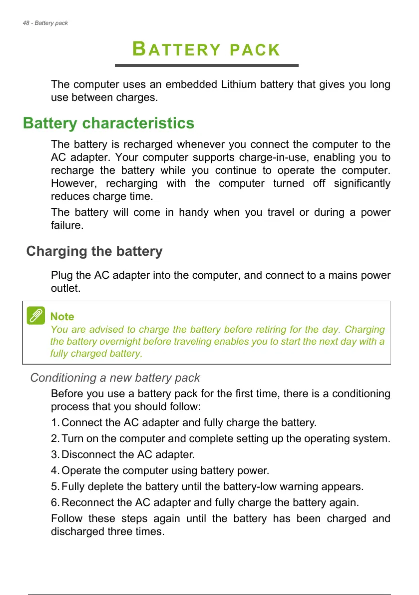 The computer uses an embedded Lithium battery that gives you long