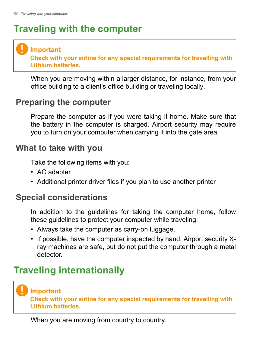 • Always take the computer as carry-on luggage.