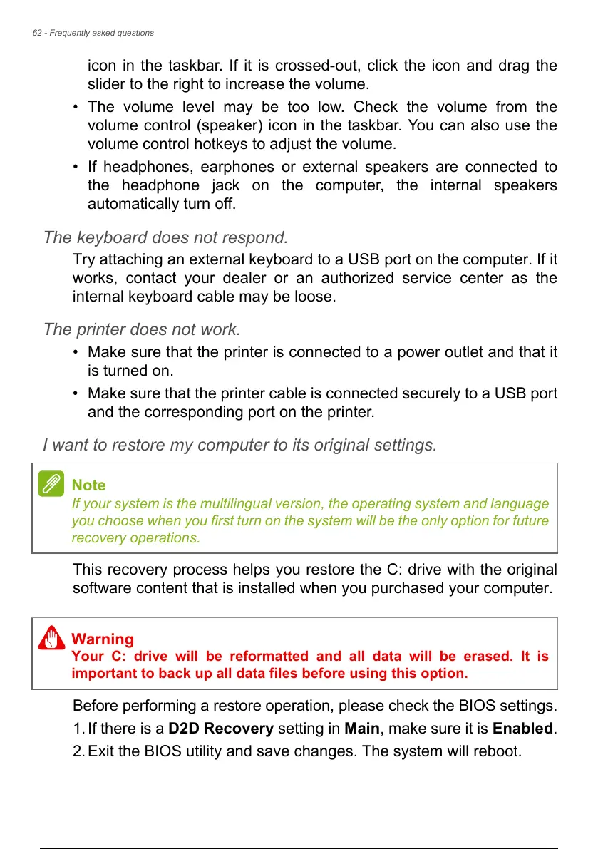 1. If there is a D2D Recovery setting in Main, make sure it is Enabled.