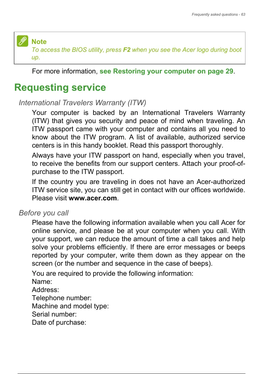 Please have the following information available when you call Acer for