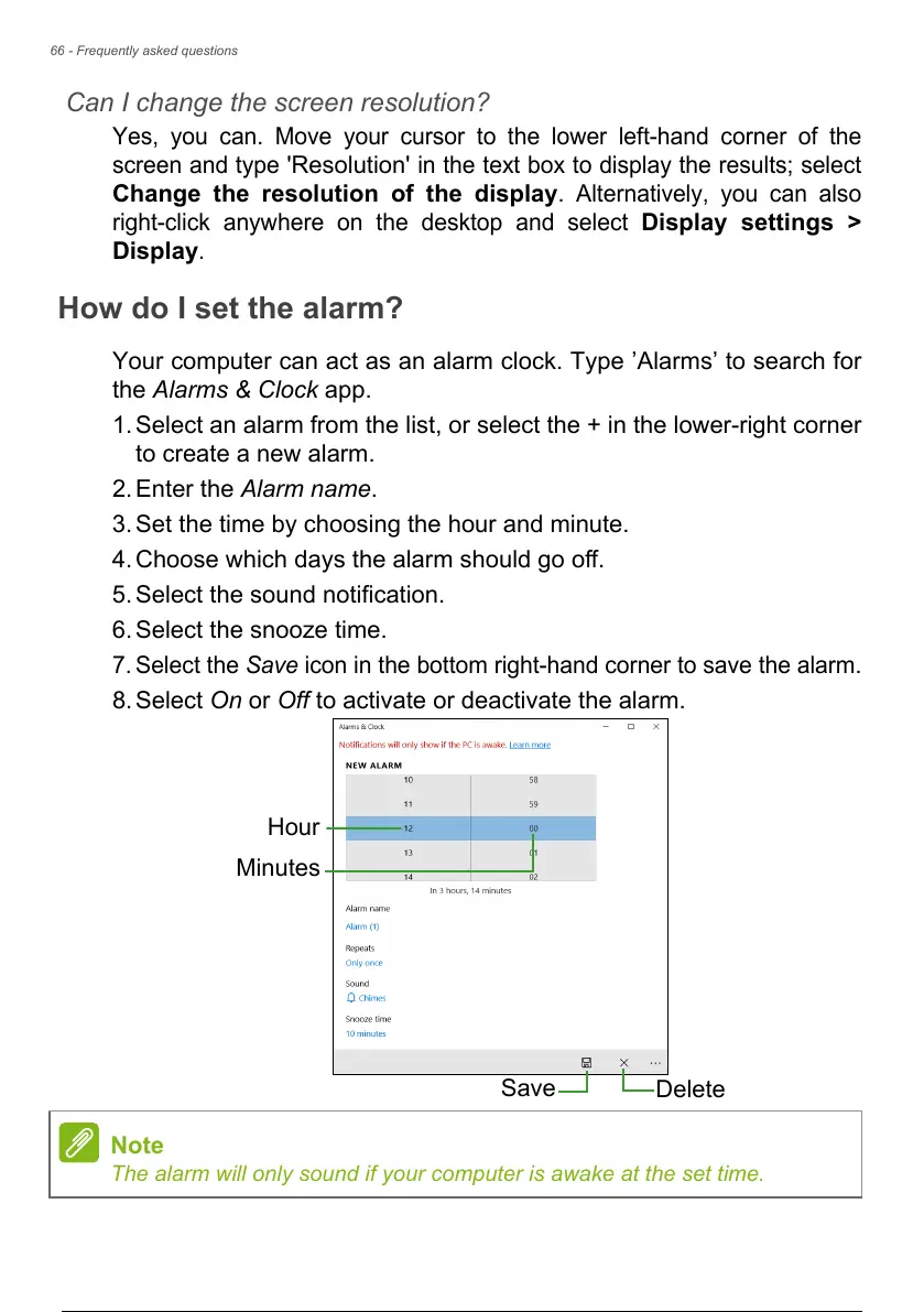 Your computer can act as an alarm clock. Type ’Alarms’ to search for