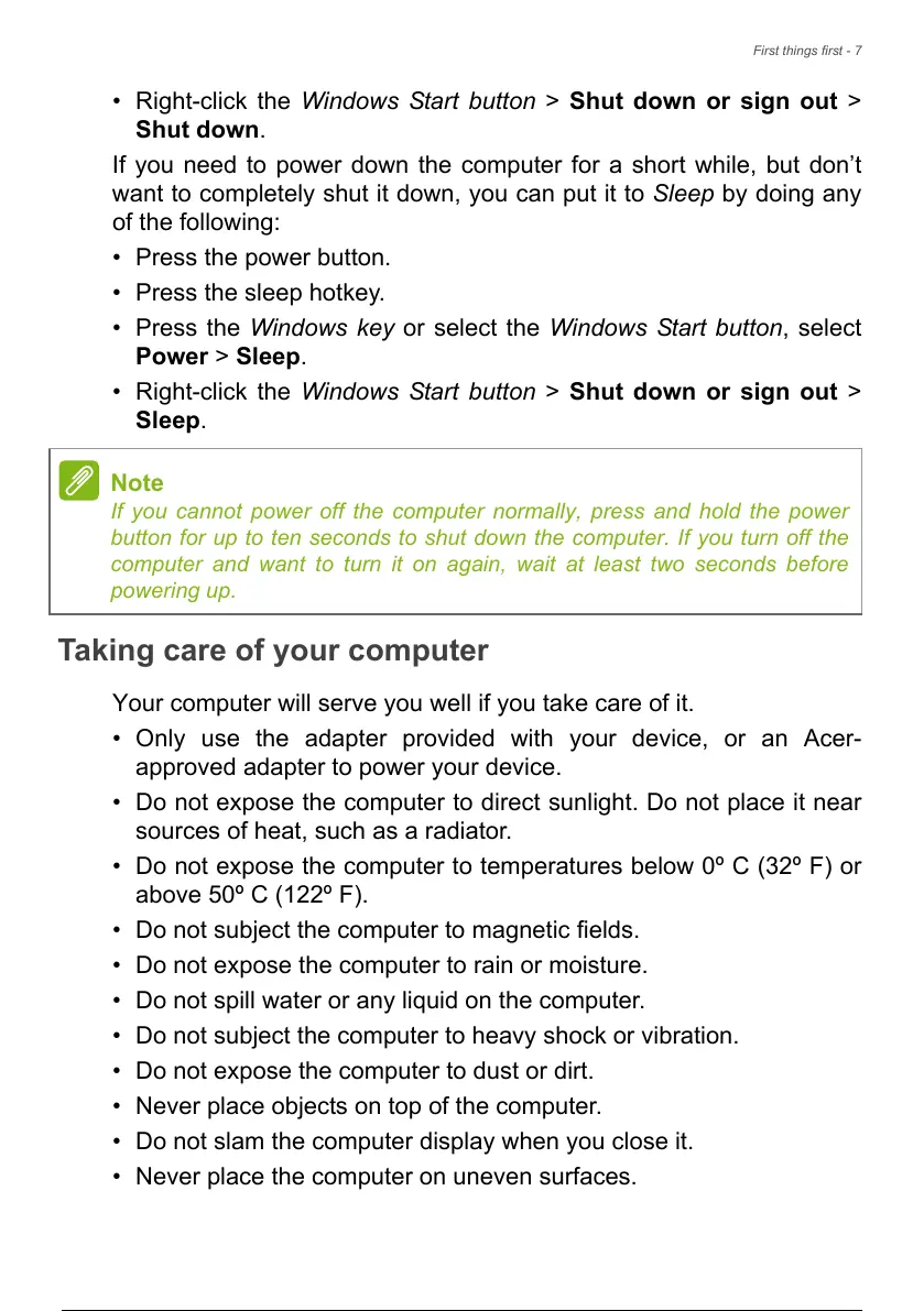 button for up to ten seconds to shut down the computer. If you turn off the
